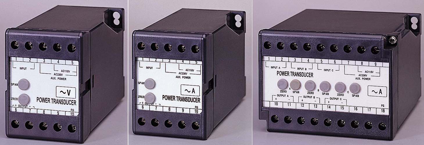 AC CURRENT / VOLTAGE TRANSDUCERS For AC CURRENT, VOLTS / 1P2W, 3P3W Accuracy:+/- 0.2% RO Input Max. 10A, 500V, 50/60/400Hz TRMS measuring is available in option Aux. Power AC 115 / 230V +/- 15%, 50/60Hz; Isolation Aux. Power 12Vdc, 24Vdc, 48Vdc, 110Vdc available in option Self powered or Loop